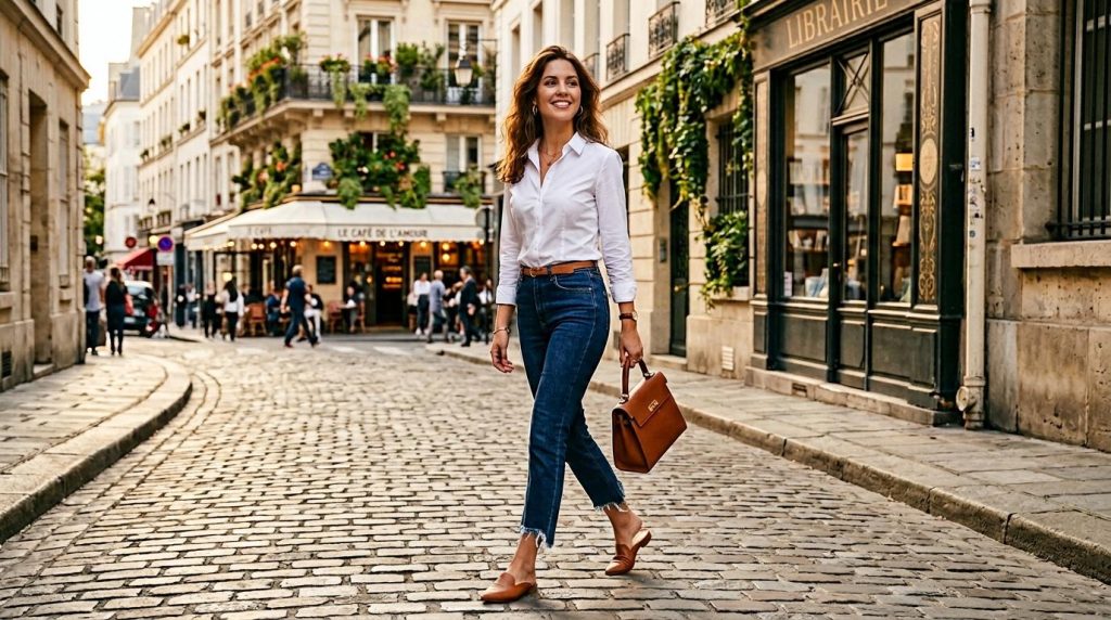 Côté associations, le jean 7/8 se montre redoutablement polyvalent. Avec des sandales ou des baskets basses, il adopte un registre casual idéal pour un samedi en famille. Avec des bottines à bout pointu, il prend une dimension rock-chic. Et glissé sous une blouse structurée, il passe sans effort du week-end au bureau. Si vous hésitez sur votre taille, pensez à consulter le guide complet des tailles de jeans américaines et leurs correspondances et conversions avant de commander.